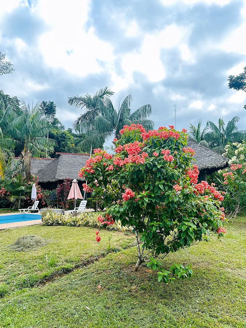 Tras un abundante desayuno, nos dirigiremos a la selva tropical cercana y caminaremos junto a árboles gigantes como el nogal o la lupuna, un árbol mítico para los indígenas. Rodeados por la selva, a veces también podrán ver loros, perezosos, tucanes, monos e insectos de aspecto peculiar. Para aliviar el calor de la mañana, pueden ir a la piscina y relajarse en el agua fresca de nuestro manantial. Para el almuerzo, les serviremos un delicioso plato de la gastronomía local.